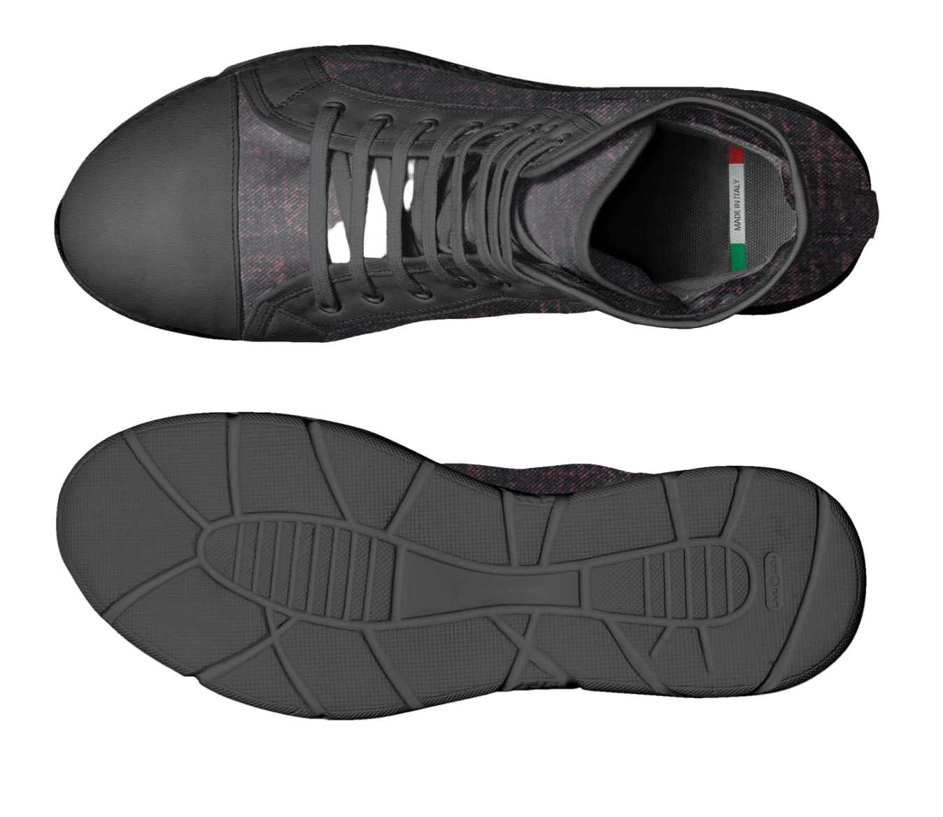 This classic and clean high-top sneaker is set on a futuristic sole carved from light rubber. It also features a built in wedge for height and comfort. The upper design is styled with a two segment lacing system and turned profiles. A prominent window box logo adorns the external side. This shoe has been crafted in Italy from genuine soft leather.